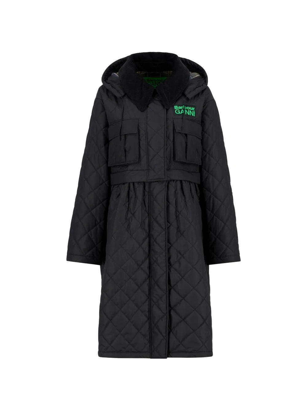 quilted pocket coat Highlights - Black - Quilted - Corduroy collar - Front flap pockets - Front gathered detail - Hooded Imported Composition Fabric 100% Washing instructions Read Manufacturer Guidelines