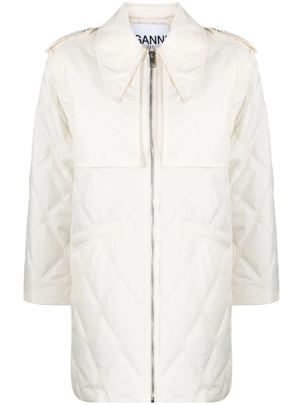 ripstop quilted jacket Highlights - Bone white - Quilted - Straight-point collar - Front zip fastening - Long sleeves - Straight hem Imported Composition Polyester 100% Lining: Polyester 100% SIZE & FIT Model measurements Height 5 ft 10 in(1.77 m) Bust/Chest 32.67 in(83 cm) Hips 35.43 in(90 cm) Waist 23.62 in(60 cm) FittingInformation This piece fits true to size. We recommend you get your regular size Cut for a loose fit Made with a mid-weight non-stretch fabric Washing instructions Dry Clean Only