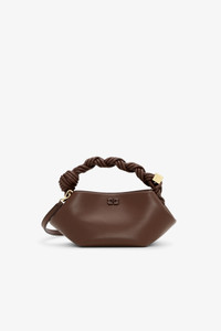 This bag features a tone-on-tone metallic GANNI Butterfly logo, a twisted handle with a braided knot, and a gold-tone metallic dice with a GANNI Butterfly logo engraved. The bag has an internal magnetic closure, a flat card pocket inside, and an adjustable and removable shoulder strap for crossbody wear. DETAILS - 65% recycled leather, 19% polyurethane fibre, 16% polyester. Learn more about our materials - Lining composition: 65% Recycled Cotton 35% Cotton - Hexagonal shape - Braided top handle with braided knot - Adjustable and removable shoulder strap - Internal magnet closure - Gold-tone metallic dice with a GANNI logo - GANNI embossed logo - One compartments - Flat card pocket Made in: China Product ID: A7280 SIZE & FIT - Strap length: 50 cm - Height: 11 cm - Width: 25 cm - Depth: 11.5 cm - Designed to hold an iPhone 15, cardholder, keys, lipstick