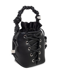 recycled-leather tote bag Highlights - Black - Top drawstring fastening - Single top handle - Lace-up detailing Imported Composition Outer: Recycled Leather 100%, Fabric 100% SIZE & FIT Measurement DEPTH 3.54 in(9 cm) HEIGHT 5.9 in(15 cm) WIDTH 6.29 in(16 cm)