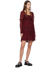 Viscose georgette dress. Graphic pattern and smocking throughout. · Elasticized square neck · Pleats at waist · Full georgette lining Supplier color: Syrah 100% viscose. Made in India 241144F052012