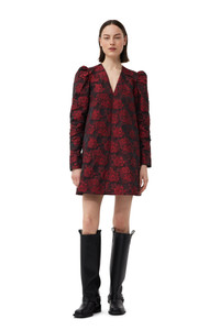 RED BOTANICAL JACQUARD MINI DRESS