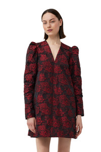 This Red Botanical Jacquard Mini Dress is made from recycled polyester and polyester. The dress is designed for a regular fit and features a V-neckline, long puff sleeves and a botanical pattern. DETAILS - 50% recycled polyester, 45% polyester, 5% polyamide - V-neckline - Long puff sleeves - Botanical pattern - Zip closure Made in: China Product ID: F8592 SIZE & FIT - Designed for a regular fit. Close fit over the shoulders - Fits true to size, take your normal size - Mediumweight, jacquard fabric - Caroline is 5’9” and wears a size US 4