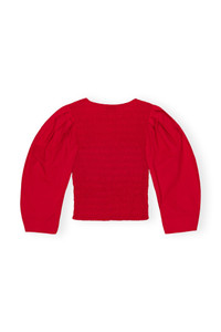 This Red Cotton Poplin Smock Blouse is designed for a form-fitting silhouette and features a U-neckline, a smock bodice with buttons and draped pleated sleeves. DETAILS - 100% organic cotton. Learn more about our materials - U-neckline - Button closure - Cropped - U-neckline - Smock bodice with buttons - Draped pleated sleeves Made in: India Product ID: F9004 SIZE & FIT - Designed for a form-fitting silhouette, tight throughout - Fits true to size, take your normal size - Lightweight, slightly stiff cotton poplin fabric - Tonia is 5’9” and wears a size US 4 - Tanja is 5’8” and wears a size US 10/12