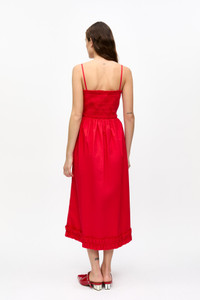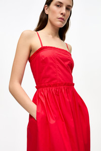 RED COTTON POPLIN STRAP DRESS