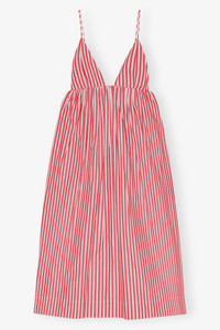 This Red Stripe Cotton Strap Midi Dress features a deep neckline and thin straps. DETAILS - 100% organic cotton. Learn more about our materials - Deep neckline - Thin straps Made in: India Product ID: F9261 SIZE & FIT - Designed for a regular fit - Fits true to size, take your normal size - Tatiana is 5’9” and wears a size US 4