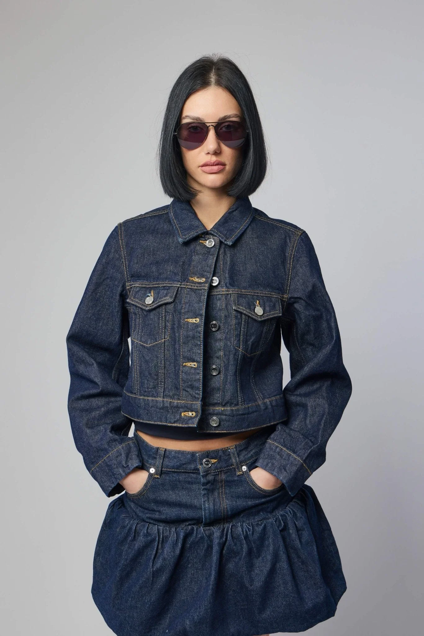 SKU: 154983 Brand style: A1010089 Bomber Jacket in a classic denim style, featuring prominent stitching and button closure. The jacket has a structured fit with front pockets for added utility. - Denim fabric - Button-front closure - Two chest pockets - Collared neckline - Visible seam details Materials: 100% Cotton Color: Rinse 077 The model is 1.75m (5.7ft) and wears a size EU36. The item fits as expected according to standard sizing. Order your usual size.