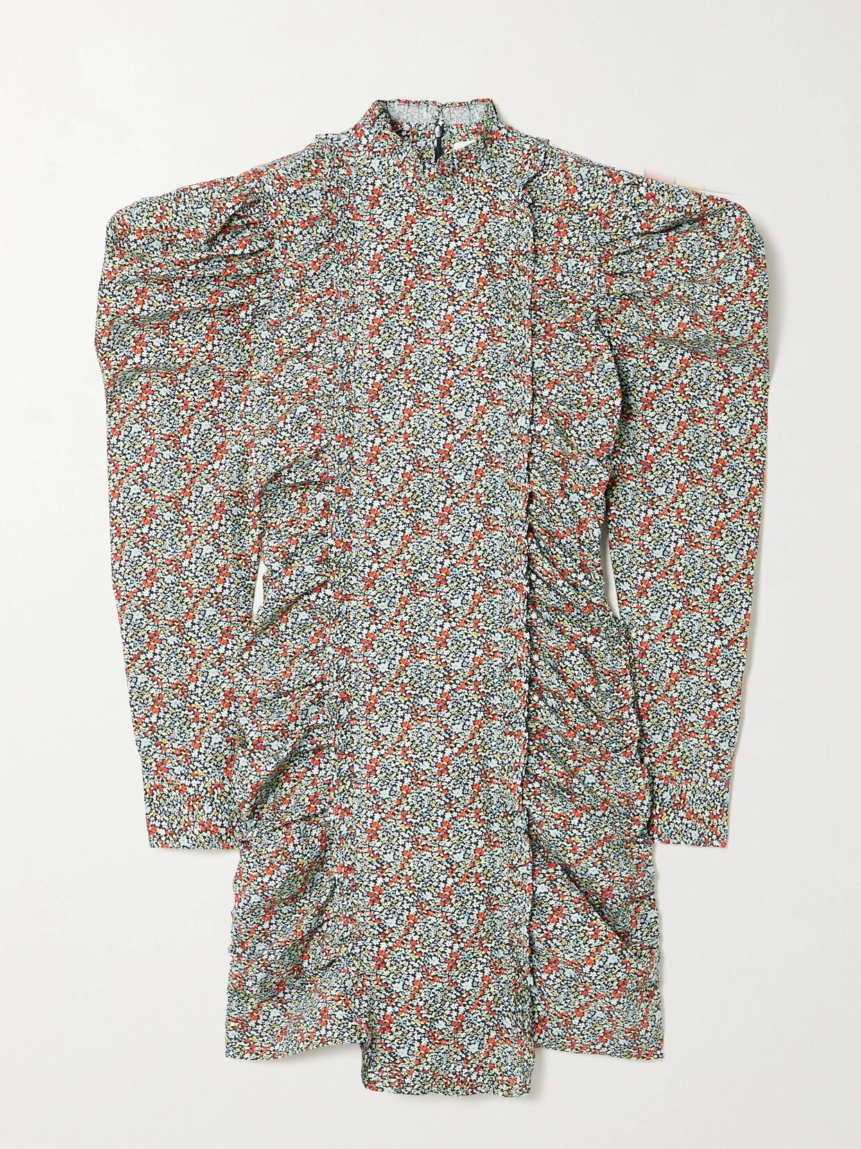 GANNI's mini dress is patterned with an array of whimsical florals that nod to the brand's love of nature. Cut from organic cotton-poplin that's ruched through the front, it's detailed with ruffles and exaggerated shoulders. Style yours with chunky ankle boots.