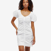 GANNI Cotton Poplin Gathered U-Neck Mini Dress