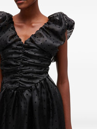 ruffled polka dot-pattern mini dress Highlights - Black - Polka dot pattern - V-neck - Ruffled detail - Gathered detail - Short sleeves Imported Composition Fabric 100% Washing instructions Read Manufacturer Guidelines