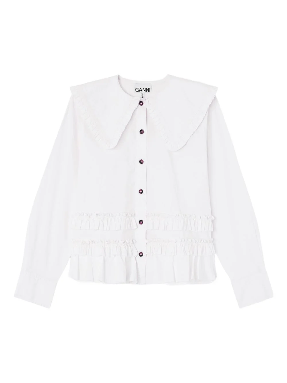ruffled top Highlights - White - Ruffled trim - Button fastening - Long sleeves - Large collar - Buttoned cuffs Imported Composition Fabric 100% Washing instructions Read Manufacturer Guidelines