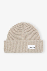 This Sand Fitted Wool Rib Knit Beanie features a folded cuff with a sewn-on GANNI logo patch. DETAILS - 45% wool, 35% recycled wool, 20% recycled polyamide. Learn more about our materials - Folded cuff - Sewn-on GANNI logo patch Made in: Moldova Product ID: A5369