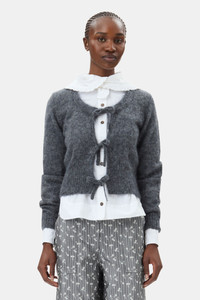 GREY LIGHT MOHAIR TIE STRING CARDIGAN