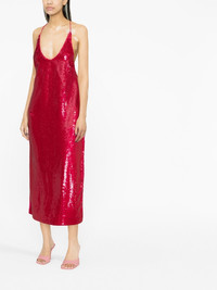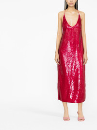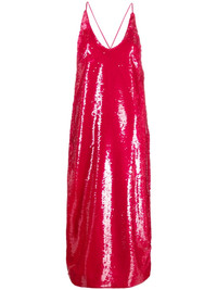 sequin-embellished midi dress Ganni presents a striking design with this mid-length dress, thanks to all-over sequin embellishment that is complete with an intriguing crossover strap-detail to the rear. Highlights - Pink - Recycled polyester blend - Sequin embellishment - Plunging v-neck - Crossover strap detail - Sleeveless - Calf-length Imported Composition Outer: Recycled Polyester 81%, Polyester 19% Lining: Recycled Polyester 100% SIZE & FIT Model measurements Height 5 ft 10 in(1.77 m) Bust/Chest 32.67 in(83 cm) Hips 35.43 in(90 cm) Waist 23.62 in(60 cm) Measurement HIPS 44.88 in(114 cm) LENGTH 48.03 in(122 cm) WAIST 40.94 in(104 cm) FittingInformation Designed for a slim fit that sits just away from the body offering a close yet comfortable fit The adjustable drawstring means that you can adjust this piece’s fit to suit your comfort and preference Made from a midweight non-stretch fabric, this piece offers minimal elasticity when worn This piece fits true to size – take your usual size