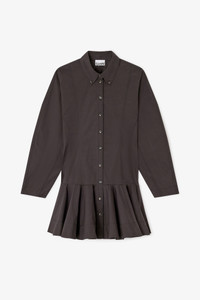 This dress features a classic collar, button-front closure, drop waist and ruffled hem detail. DETAILS - 97% organic cotton, 3% elastane Learn more about our materials - Classic collar - Button-front closure - Long sleeves - Drop waist - Ruffled hem Made in: India Product ID: W1001 SIZE & FIT - Slim fit - Mini length - Lena is 5’9” and wears a size US 4