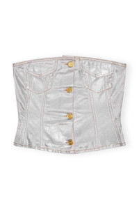 This Silver Foil Denim Corsage is made from organic cotton. The top is designed for a slim fit and features a button closure, front pockets and a silver foil. DETAILS - 100% organic cotton - Button closure - Front pockets - Silver foil Made in: Turkey Product ID: J1379 SIZE & FIT - Designed for a slim fit throughout, skimming the body without clinging - Fits true to size, take your normal size - Mediumweight, non-stretch rigid denim - Thalita is 5’9” and wears a size US 4