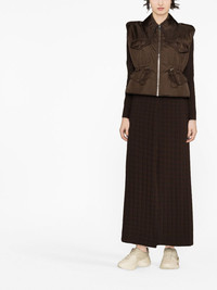 sleeveless drawstring gilet Ganni offers a conscious take on outerwear with this gilet. In a chestnut brown hue, the sleeveless design is crafted with recycled materials, whilst the brand adds modern style with shoulder epaulettes and an adjustable toggle waistband. Imported Composition Outer: Recycled Polyester 100% Lining: Recycled Polyester 100% SIZE & FIT Model measurements Height 5 ft 10 in(1.77 m) Bust/Chest 31.49 in(80 cm) Hips 35.03 in(89 cm) Waist 23.22 in(59 cm) FittingInformation This piece fits true to size. We recommend you get your regular size Designed for a loose fit with a close fit at the waist Made with a mid-weight non-stretch fabric Washing instructions Dry Clean Only