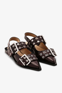 These Snake Burgundy Feminine Buckle Ballerinas feature slingback straps and a pointed toe. The shoes have two silver-tone buckles with matching eyelets and a black squared block heel. DETAILS - 52% recycled leather, 27% polyester, 21% polyurethane. Learn more about our materials - Slingback straps - Pointed toe - Two silver-tone buckles with eyelets - Black squared block heels Made in: Portugal Product ID: S2951 SIZE & FIT - Fits true to size, take your normal size