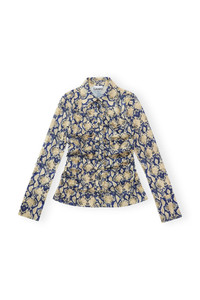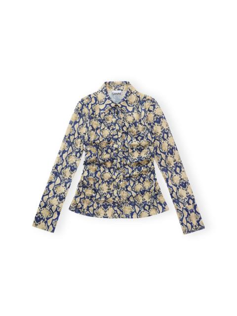 SNAKE PRINTED CRINKLED SATIN FITTED SHIRT
