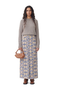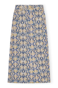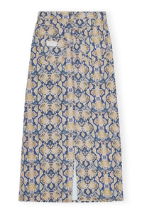This Snake Printed Denim Maxi Slit Skirt is made from organic cotton and elastane. The skirt is designed for a regular fit and features a 5-pocket style with a zip and button closure, belt loops, GANNI logo at the back pocket, snake print and a high slit at the front and back. DETAILS - 99% organic cotton, 1% elastane - 5-pocket style with a zip and button closure - Belt loops - GANNI logo at the back pocket - Snake print - High slit at the front and back Made in: Turkey Product ID: J1446 SIZE & FIT - Designet i et regular fit - Designed to be fitted at the waist - Fits true to size, take your normal size - Mediumweight, slight stretch denim - Zoey is 5’10” and wears a size US 4