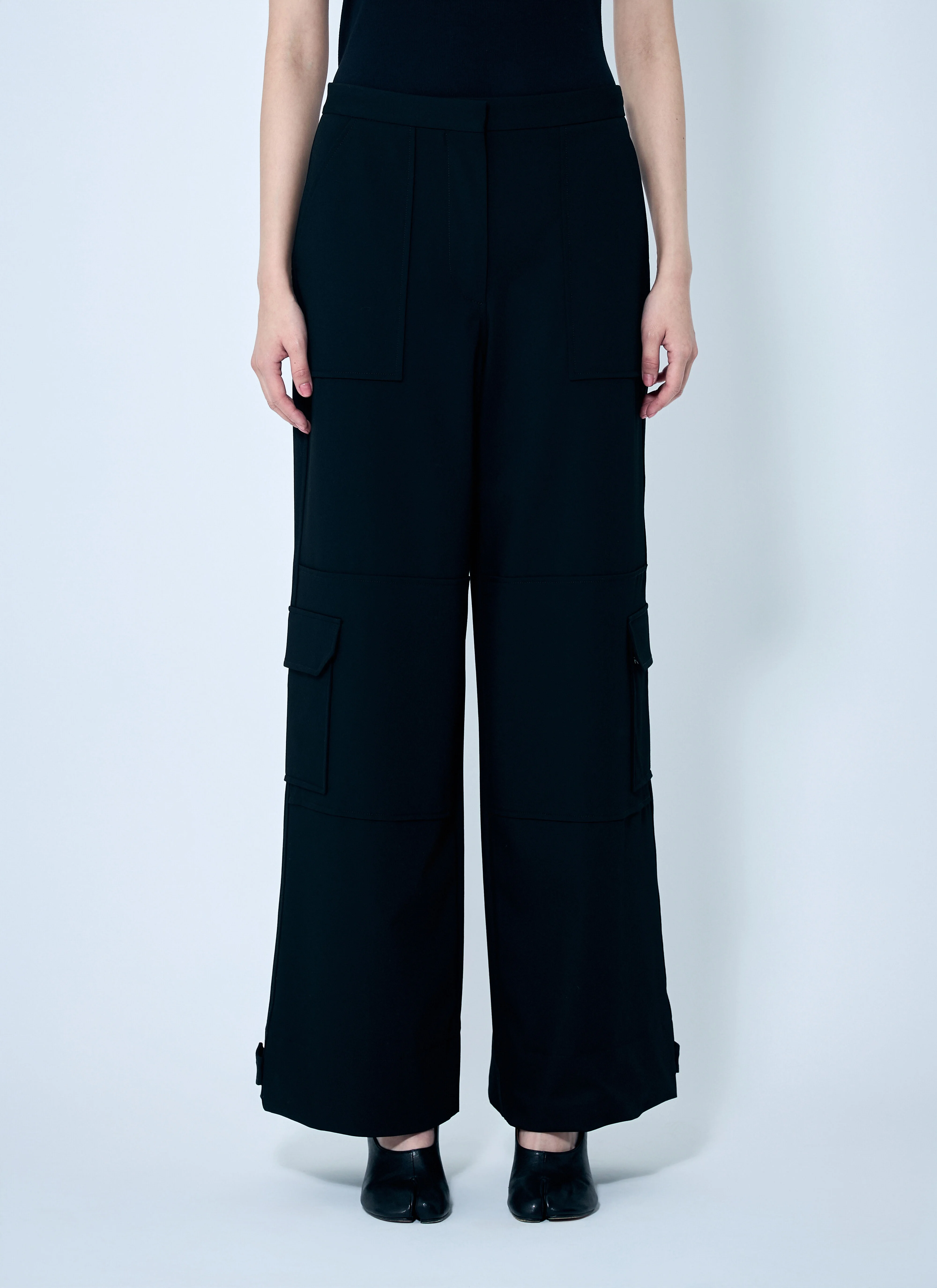Twill suiting cargo pants in fluid weave. - Mid rise - Hook-and-eye and zip-fly fastening - Multi-pocket design - 48% Lenzing™ Ecovero™ Viscose, 47% Recycled Polyester, 5% Elastane. - Color: Black - Code: W0163 099