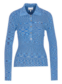 Spacedyed logo-button polo top Highlights - Blue - Spacedyed pattern - Long sleeves - Polo collar - Logo buttons - Embroidered logo Imported Composition Viscose 85%, Polyamide 15% Washing instructions Read Manufacturer Guidelines