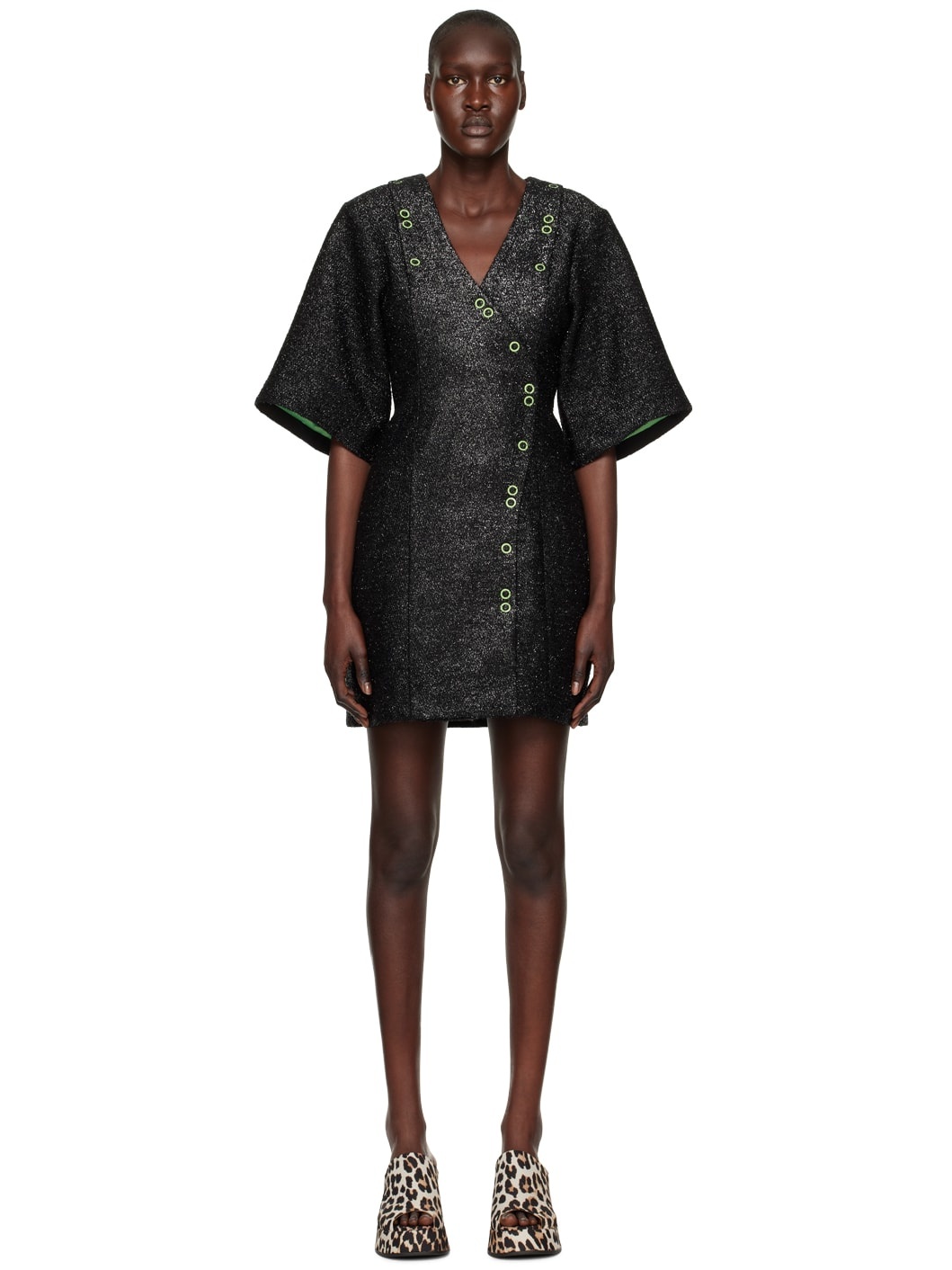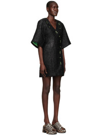 Knit recycled polyester and wool-blend dress. Metallic thread detailing throughout. · V-neck · Modified press-stud closure at front and back · Full logo-woven satin lining Supplier color: Black