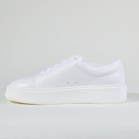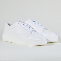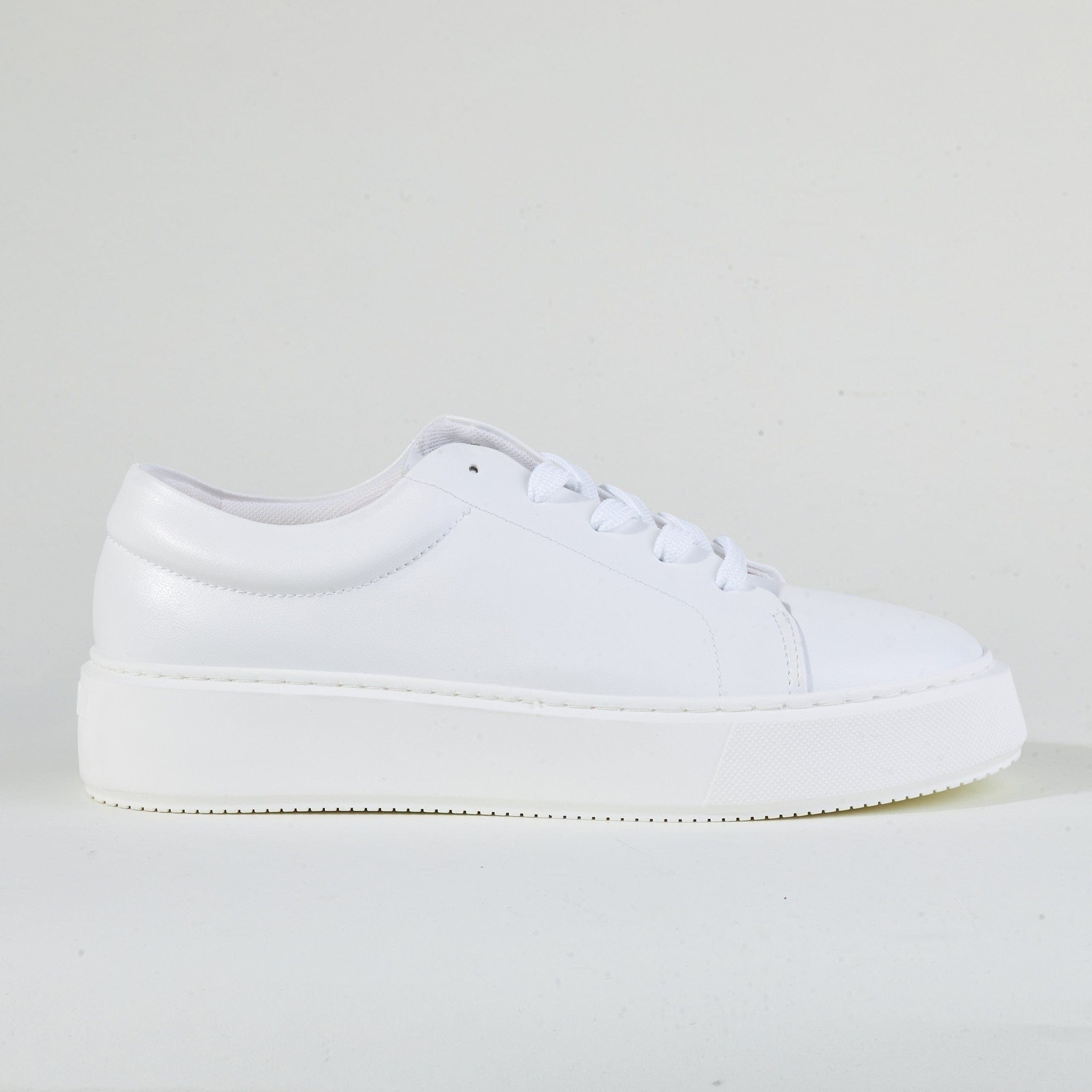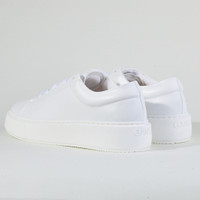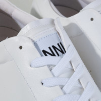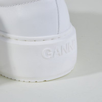 - White - 100% VegeaTM - Oversized Rubber Sole - Ganni Signature on Heel - Lace up closure - Ganni Branding Everyday classic – A crisp white VegeaTM Trainer from Ganni. This gorgeous footwear features an elevated rubber sole and flat laces completed with the Ganni signature on the heel. Signature Ganni branding is seen throughout. Fits true to size, take your normal size