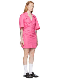 Organic cotton poplin dress. Ruching throughout. · Open spread collar at V-neck · Zip closure at side-seam Available exclusively at SSENSE. Supplier color: Carmine rose 100% organic cotton. Made in India 222144F052021
