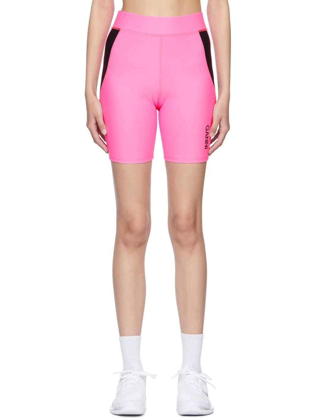 Paneled stretch polyester jersey sport shorts. · Elasticized waistband · Logo bonded at front Available exclusively at SSENSE. Supplier color: Carmine rose 78% polyester, 22% elastane. Made in Portugal 222144F088017