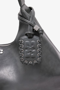 The bag is crafted in recycled leather featuring a mirror hangtag and logo hardware. This bag contains Oleatex®, a next-gen material that is part of our Fabrics of the Future initiative. Learn more in our Material Index. DETAILS - 60% recycled leather, 26% TENCEL™ Lyocell, 14% polyurethane. Learn more about our materials - Lining composition: 65% Recycled Cotton 35% Cotton - Shoulder strap - Zip closure - Silver-tone GANNI Butterfly logo - Mirror hangtag - One compartment Made in: China Product ID: A6802 SIZE & FIT - Strap length: 45 cm - Height: 38 cm - Width: 56 cm - Depth: 18 cm - For personalised guidance on sizing and fit, contact our Customer Service team - here - .
