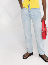 straight-leg high-rise jeans Known for a sustainable approach to design, these GANNI jeans are crafted in an organic cotton fabrication. The straight-leg style is enhanced with a lightly washed style for an effortless completion. Highlights - Blue organic cotton straight-leg high-rise jeans from ganni featuring logo patch to the rear, washed, belt loops, high-waisted and straight leg. Imported Composition Organic Cotton 100% SIZE & FIT Model measurements Height 5 ft 10 in(1.77 m) Bust/Chest 32.28 in(82 cm) Hips 35.03 in(89 cm) Waist 25.19 in(64 cm) Measurement FRONT RISE 12.79 in(32.5 cm) HIPS 37.4 in(95 cm) FittingInformation This piece fits true to size. We recommend you get your regular size Cut for a slim fit Made with a mid-weight non-stretch fabric Washing instructions Machine Wash