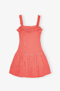 This Red Stretch Seersucker Strap Ruffle Mini Dress features a straight neckline, a ruffled hemline, smock straps, dropped waist and a flared skirt. DETAILS - 51% recycled polyester, 44% recycled polyamide, 5% elastane. Learn more about our materials - Lining composition: 100% recycled polyester - Straight neckline - Smock strap - Ruffled hemline - Dropped waist - Flared skirt Made in: China Product ID: W0677 SIZE & FIT - Slim fit