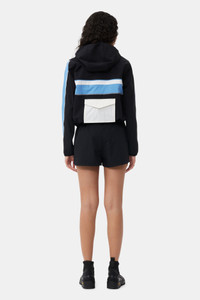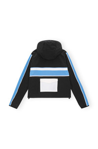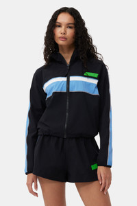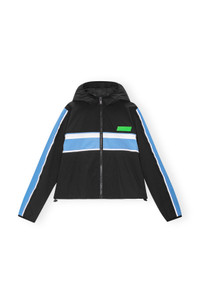 This Stretch Shell Tracksuit Jacket is made from recycled nylon and spandex. The jacket is designed for a relaxed fit and features a hood, zip closure, reflex piping, elastic edges, a large pocket at the back and a green GANNI Active rubber logo badge. at the front. DETAILS - 88% recycled nylon, 12% spandex. Learn more about our materials - Lining composition: 100% Recycled Polyester - Hood - Zip closure - Reflex piping - Elastic edges - Large pocket at the back - Green GANNI Active rubber logo badge at the front Made in: China Product ID: F8605 SIZE & FIT - Designed for a relaxed fit - Take your normal size to achieve the model's look, those in between sizes or with a smaller frame might consider taking a size down - Lightweight, woven and slightly stretchy fabric - Thalita is 5’9” and wears a size US 4
