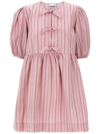 poplin bow dress Highlights - Pink - Vertical stripe pattern - Short puff sleeves Imported Composition Cotton 100%