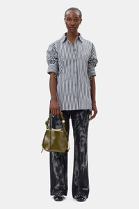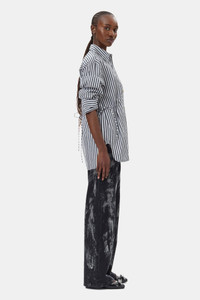 This Stripe Cotton Oversized Tie String Shirt features a button closure at the front with a pointed collar. The shirt has adjustable side strings and long sleeves with buttoned cuffs. DETAILS - 100% organic cotton. Learn more about our materials - Collar - Long sleeves with buttoned cuffs - Button closure at the front Made in: India Product ID: W0096 SIZE & FIT - Oversized fit - Tonia is 5’9” and wears a size US 4