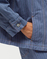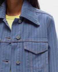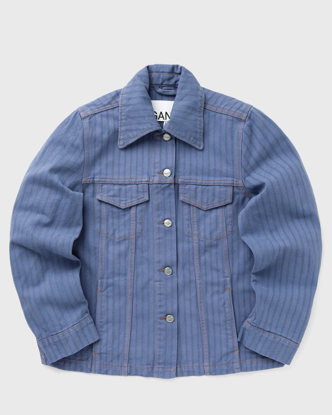 The Ganni Stripe Overdyed Denim Jacket is made from organic cotton. It has a collar, a button fastening on the front and front pockets. - Button fastening - Front pockets - Buttoned cuffs This item is partly made of certified, recycled and sustainable materials, reducing the global amount of waste and conserving primary raw materials. Discover a wide range of sustainable items now at BSTN! Article Number: J1522-083 Gender: Women Color: COUNTRY BLUE Material: 100% Cotton