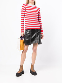 striped cable knit jumper Highlights - Red/white - Cashmere-merino blend - Two-tone design - Cable knit - Decorative button detailing - Embroidered logo to the side - Round neck - Long sleeves - Ribbed hem Imported Composition Cashmere 50%, Merino 50% SIZE & FIT Model measurements Height 5 ft 10 in(1.77 m) Bust/Chest 31.49 in(80 cm) Hips 34.64 in(88 cm) Waist 23.62 in(60 cm) FittingInformation This piece fits true to size. We recommend you get your regular size Cut for a loose fit Made with a mid-weight fabric Washing instructions Hand Wash