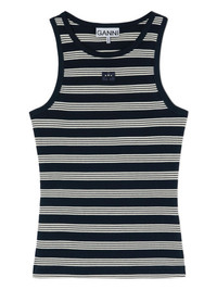 striped embroidered-logo top Highlights - Dark blue - Striped - Embroidered detail - Round neck - Sleeveless Imported Composition Fabric 100% Washing instructions Read Manufacturer Guidelines