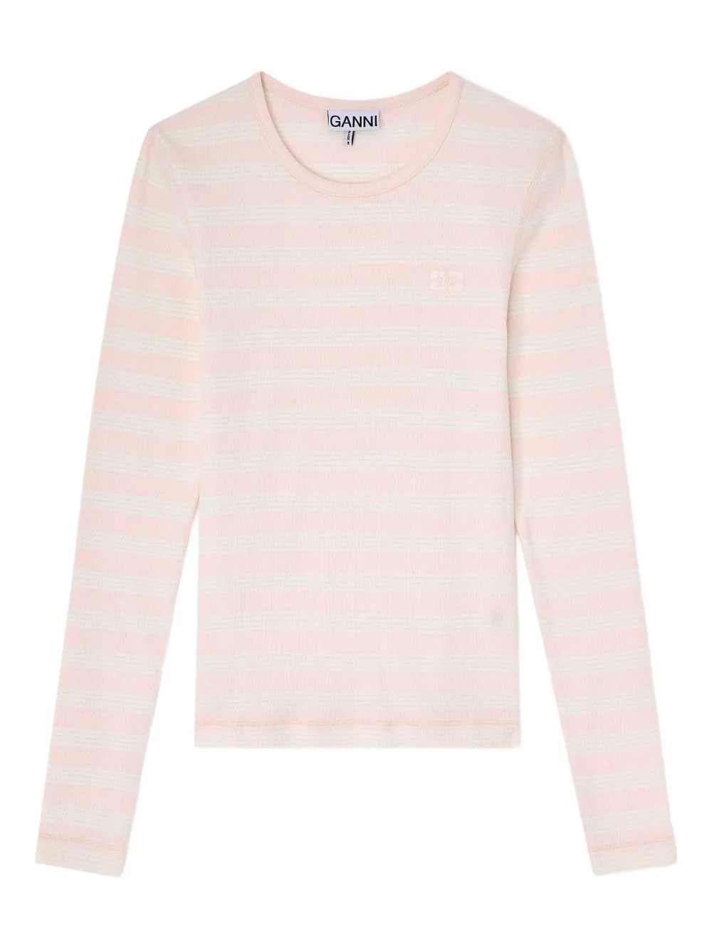 striped long-sleeved top Highlights - Light pink - Striped - Round neck - Long sleeves - Embroidered logo Imported Composition Fabric 100% Washing instructions Read Manufacturer Guidelines