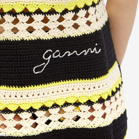 GANNI takes a sunshine approach to dressing this season, with crochet at the brand’s forefront. From bikini cover to evening slip dress - its high thigh split and exudes femininity while retaining GANNI’s element of individuality. A cross over back and branded embroidery adds the perfect finishing touch. - 100% Organic Cotton