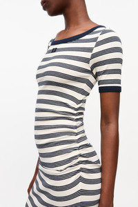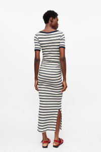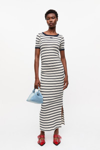 STRIPED SOFT COTTON RIB SHORT SLEEVE DRESS