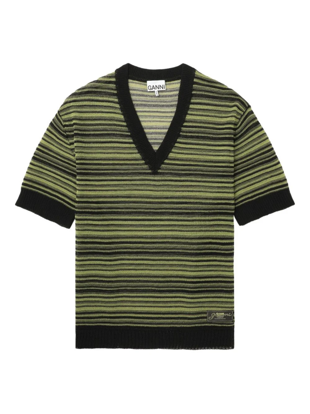 striped v-neck T-shirt Highlights - Black and lime green - Striped pattern - V-neck - Short sleeves Imported Composition Polyamide 55%, Cotton 45% Washing instructions Read Manufacturer Guidelines