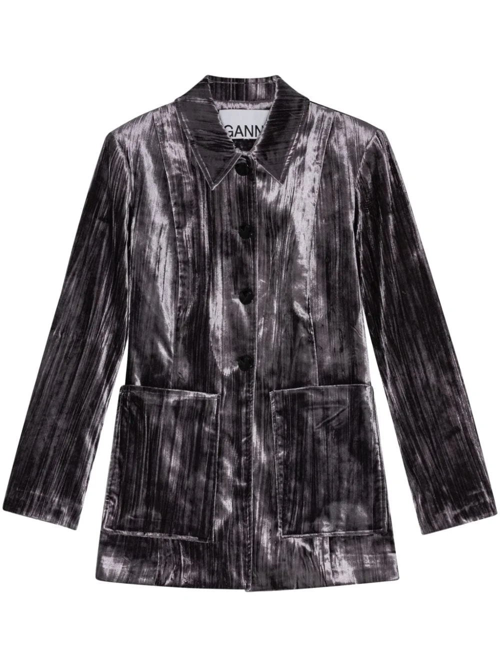 striped velvet-finish blazer Highlights - Black/white - Stretch-design - Velvet finish - Vertical stripe pattern - Classic collar - Front button fastening - Long sleeves - Two front patch pockets - Straight hem Imported Composition Viscose 100%