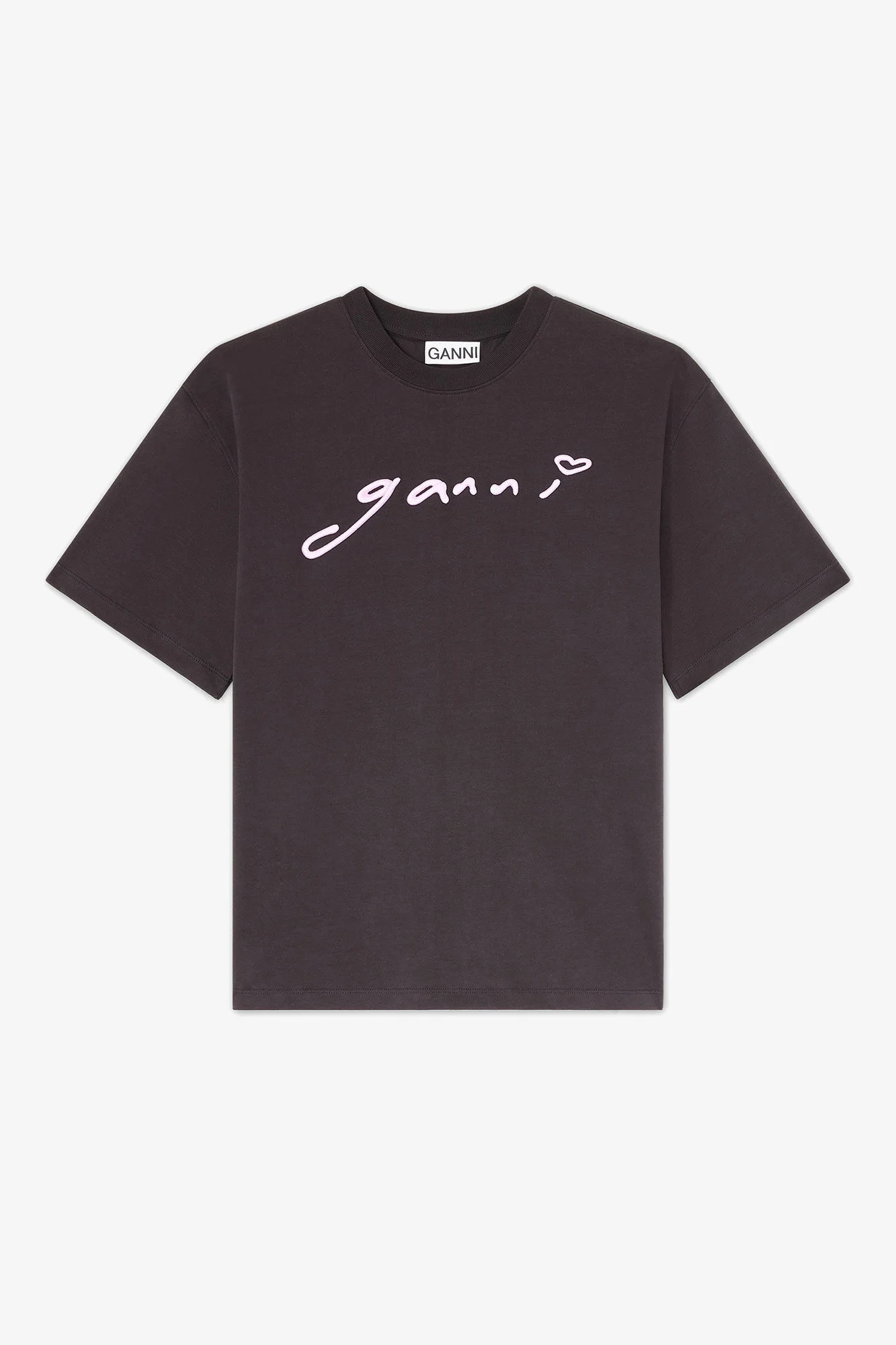 This T-shirt features a round neckline and an embroidered GANNI logo. DETAILS - 100% Organic Cotton Learn more about our materials - Round neckline - Embroidered GANNI logo Made in: Portugal Product ID: A1050187 SIZE & FIT - Oversized fit