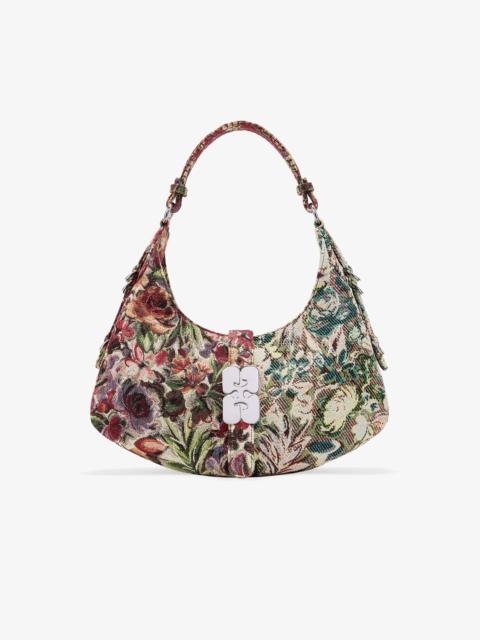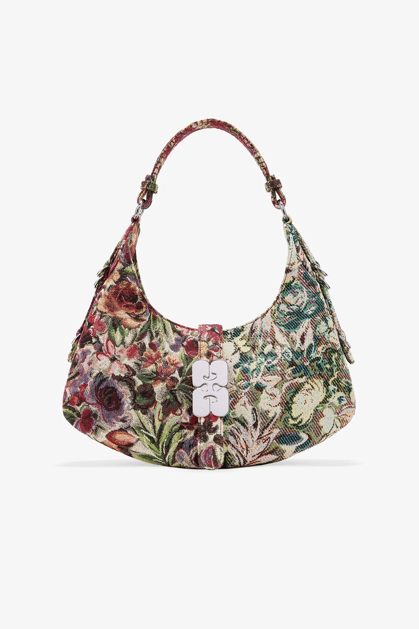 This bag features a accordian-style silhouette, a shoulder strap and D-ring detailing at the side. The bag has a closure tab with the signature GANNI Butterfly clasp in silver-tone, 1 main compartment and an inside open pocket. DETAILS - 30% polyester, 26% cotton, 25% wool, 8% acrylic, 6% polyamide, 5% other fibers. Learn more about our materials - Lining composition: 85% Recycled Polyester 15% Polyester - Accordion-style silhouette - Shoulder strap - Silver-tone GANNI Butterfly logo - D-rings detailing - One compartment - Inside open pocket Made in: China Product ID: A7288 SIZE & FIT - Strap length: 27 cm - Height: 19 cm - Width: 37 cm - Depth: 9 cm - Designed to hold an iPhone 16 Pro Max, wallet, sunglasses, keys, water bottle, tablet or pouch - For personalised guidance on sizing and fit, contact our Customer Service team - here - .