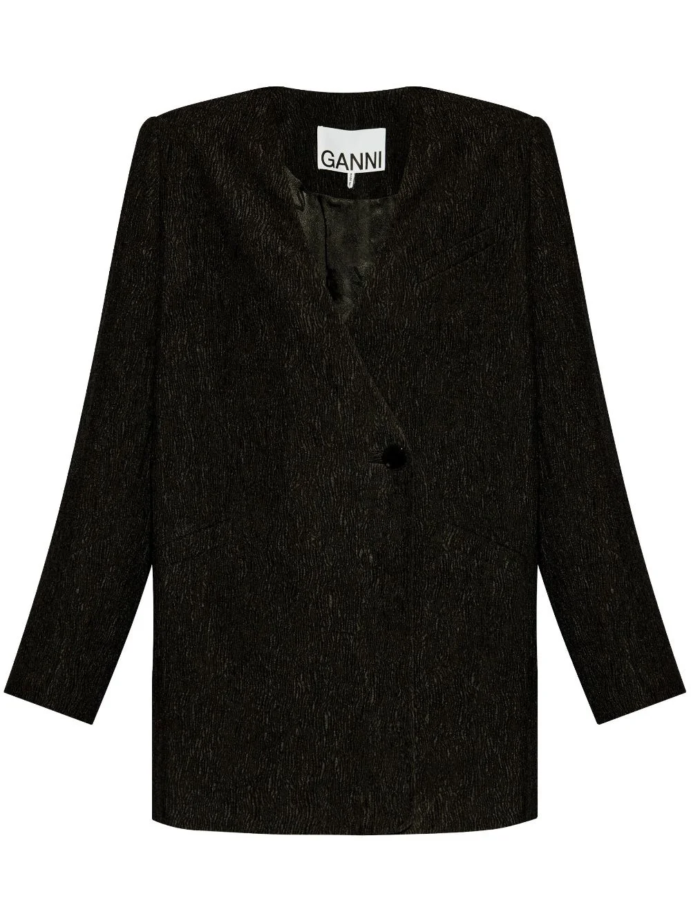 textured collarless jacket Highlights - Black - Ecovero™ viscose - Recycled polyester - Textured finish - Collarless - V-neck - Front button fastening - Long sleeves - Straight hem Made in Italy Composition Other fibres 100%