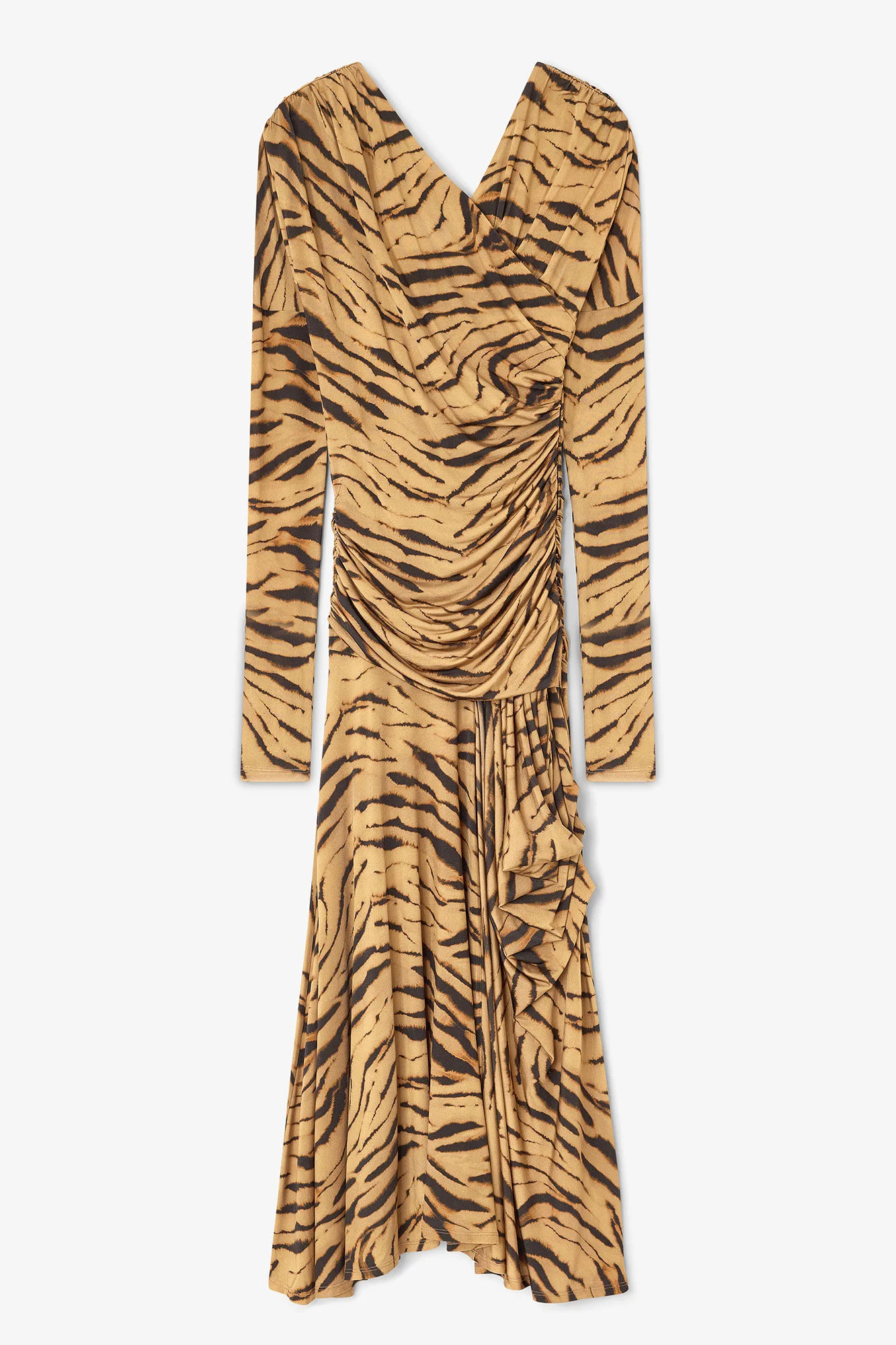 This dress features an asymmetrical neckline, long sleeves and draped ruching along the bodice. DETAILS - 95% viscose, 5% elastane. Learn more about our materials - Asymmetrical neckline - Long sleeves - Ruching along the bodice Made in: Turkey Product ID: T4381 SIZE & FIT - Slim fit - Long length - Yaniris is 5’11” and wears a size US 4 - For personalised guidance on sizing and fit, contact our Customer Service team - here - .