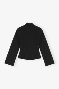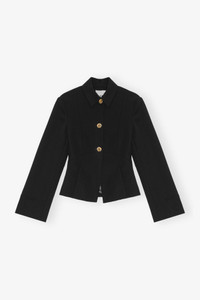 This Black Light Twill Suiting Blazer features a classic pointed collar and three gold-tone buttons down the front. The blazer has long sleeves and a subtle pleating at the waist. DETAILS - 100% recycled polyester. Learn more about our materials - Lining composition: 100% Recycled Polyester Made in: China Product ID: W0057 SIZE & FIT - Slim fit - Zoey is 5’10” and wears a size S