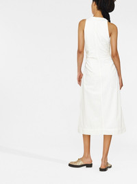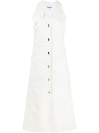 v-neck sleeveless midi dress Highlights - Light yellow - Cotton - Seersucker weave - Vertical stripe print - V-neck - Pointed flat collar - Front button fastening - Straight hem Imported Composition Outer: Organic Cotton 100% Lining: Organic Cotton 100% SIZE & FIT Model measurements Height 5 ft 10 in(1.78 m) Bust/Chest 30.31 in(77 cm) Hips 36.61 in(93 cm) Waist 24.8 in(63 cm) Washing instructions Machine Wash